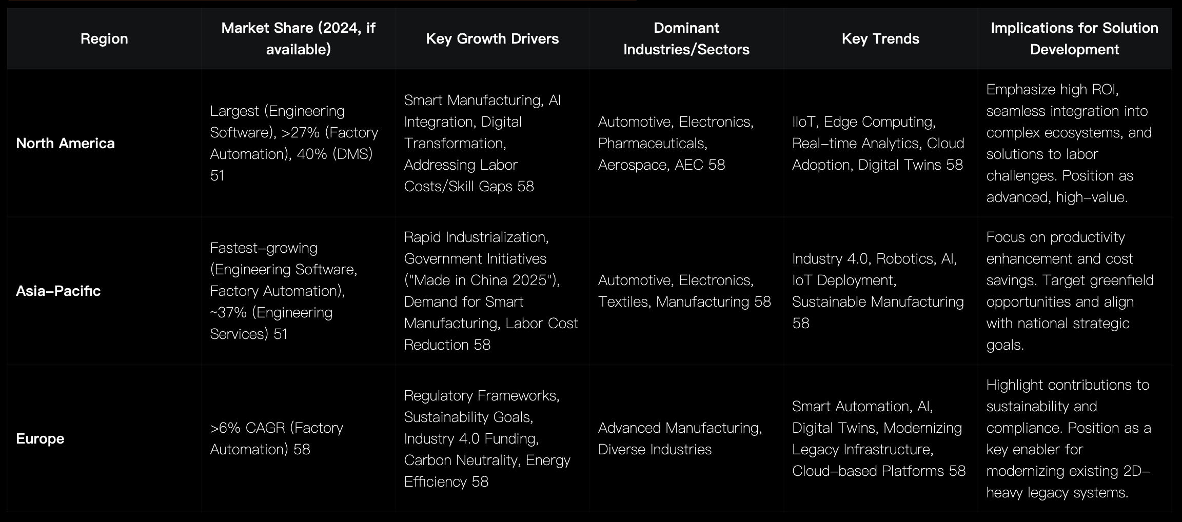 The global market for engineering software and automation exhibits distinct regional characteristics and adoption drivers, necessitating tailored strategies for market penetration.